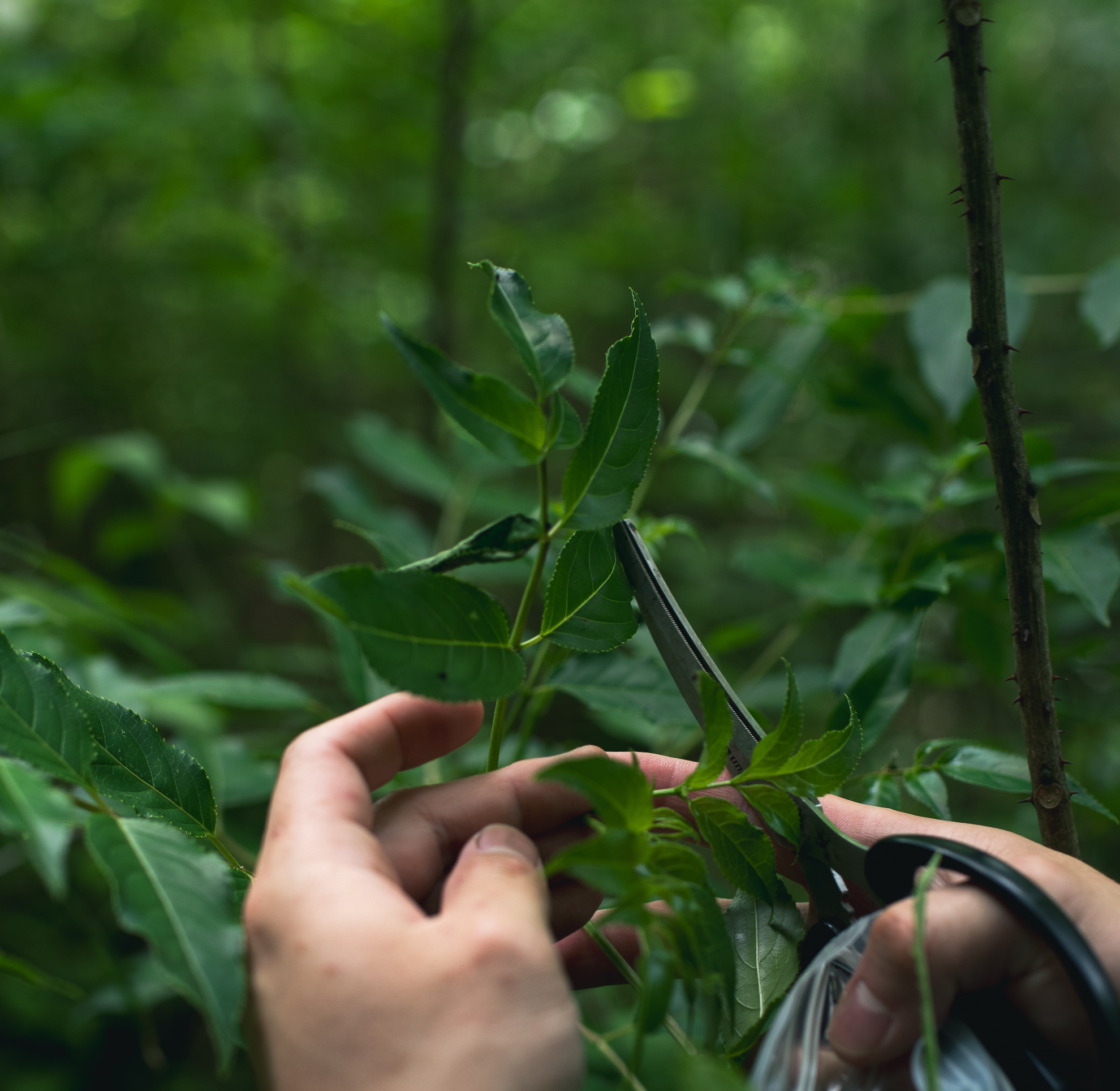 単純に必要な人数分を採取するのではなく、生育状況や日のあたり具合のような植物の周辺環境も考慮しながら、長く伸びた枝を剪定するように、生育に大きな影響が出ないように配慮しながらの作業だという。人間の都合に合わせて素材を調達するのではなく、環境が豊かに保たれていくことに気を配りながら自然の恵みをいただく、そういった姿勢を大切にしているそうです。